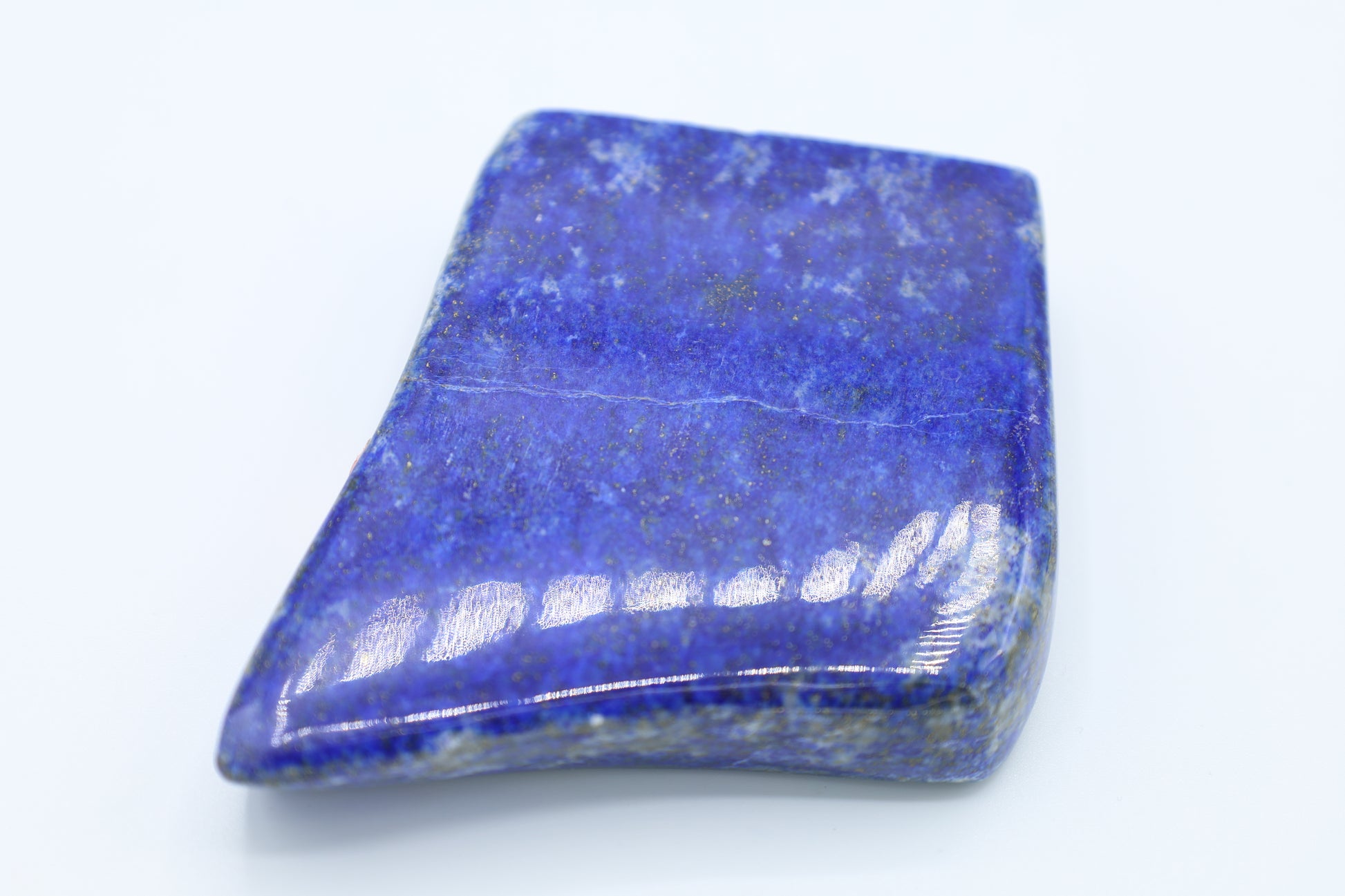 Dieser faszinierende Lapislazuli überzeugt mit seiner intensiven, samtigen Blaufarbe und den charakteristischen Goldflöckchen aus Pyrit. Die sorgfältig polierte Oberfläche betont die natürliche Schönheit dieses kostbaren Minerals.